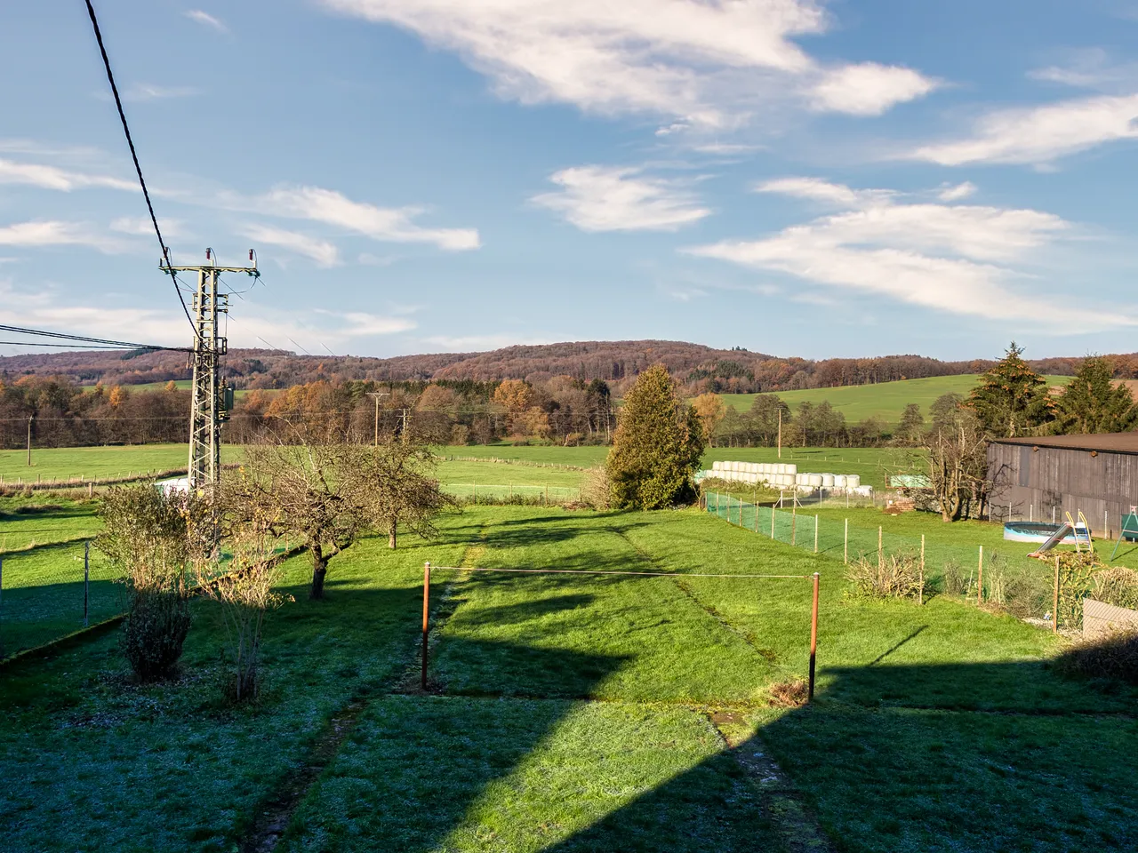 Das Grundstück ist groß, flach und hat einen schönen Blick ins Grüne.
