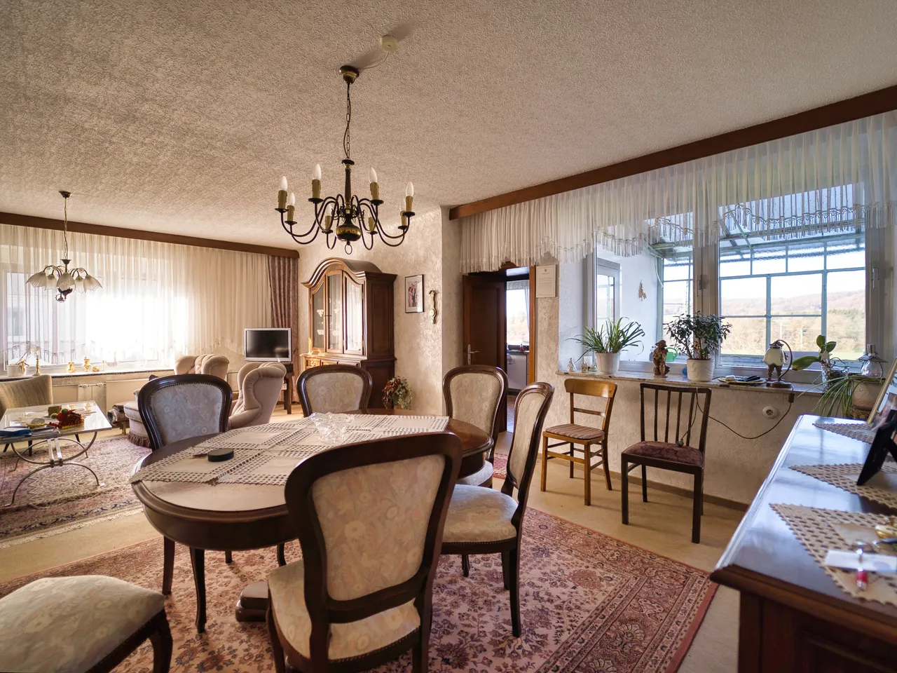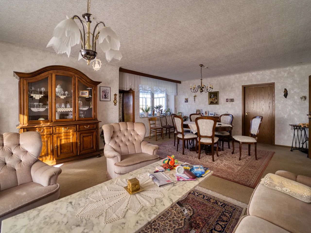 großes Wohnzimmer mit Esszimmer