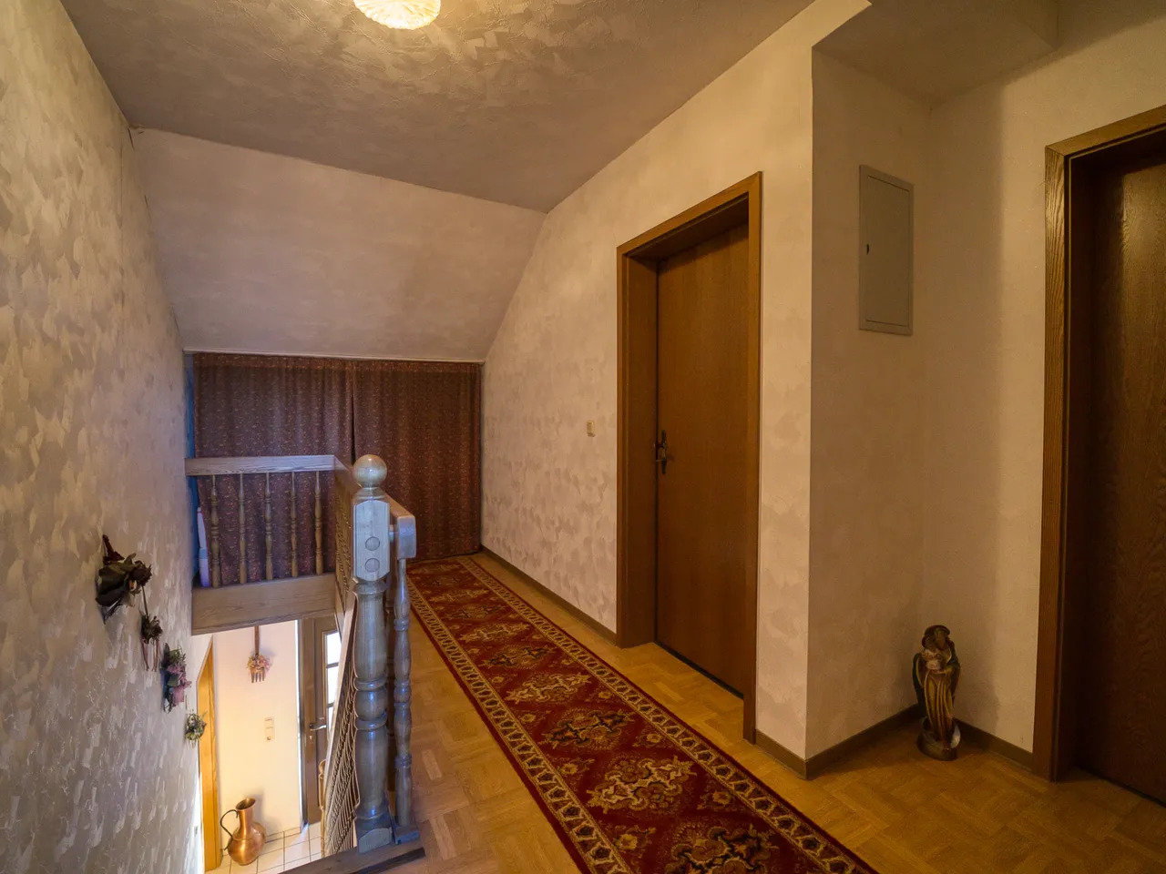 Ca. 1992 wurde der Wohnbereich im Erdgeschoss umfangreich modernisiert. Auch das Bad und die Elektrik (teilweise) wurden erneuert. Es sind 3 FI-Schutzschalter installiert.