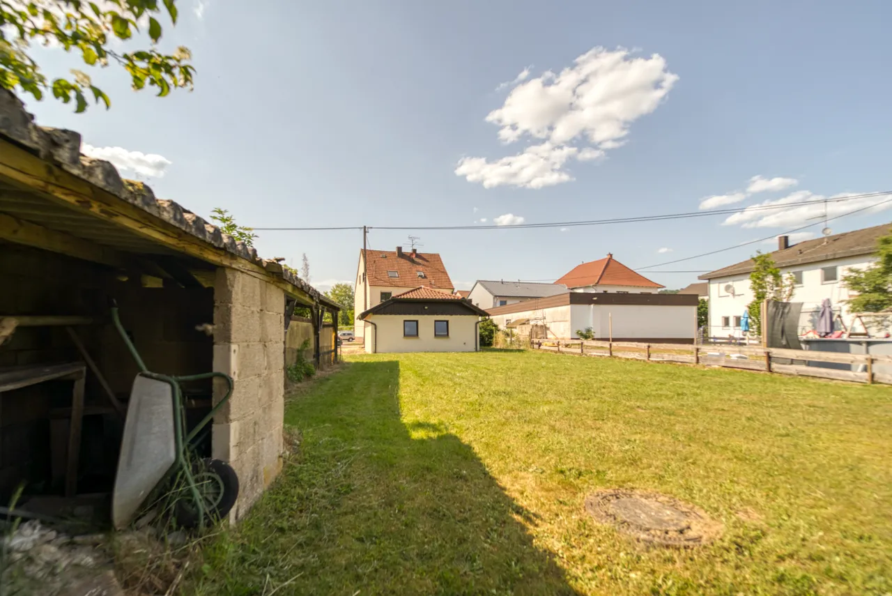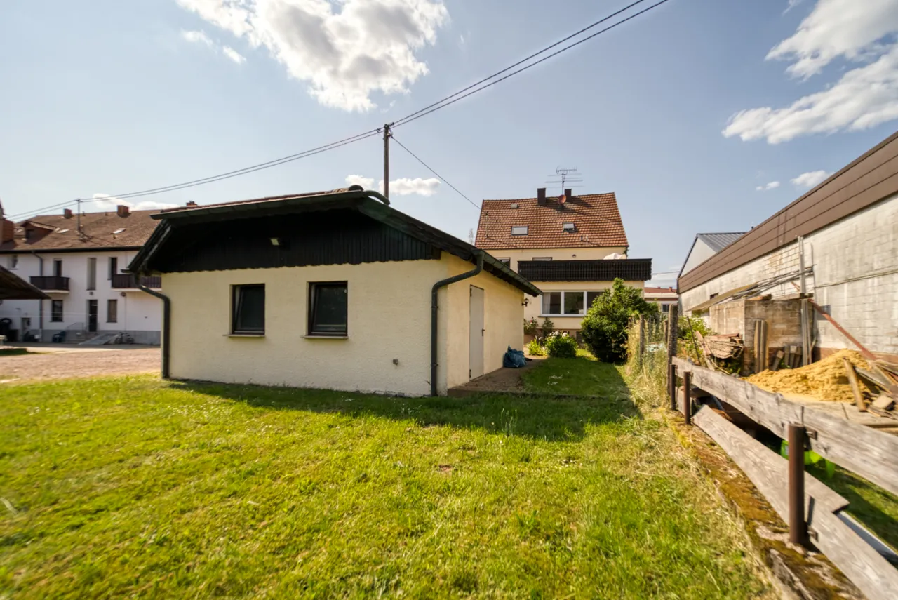 Große Doppelgarage hinterm Haus