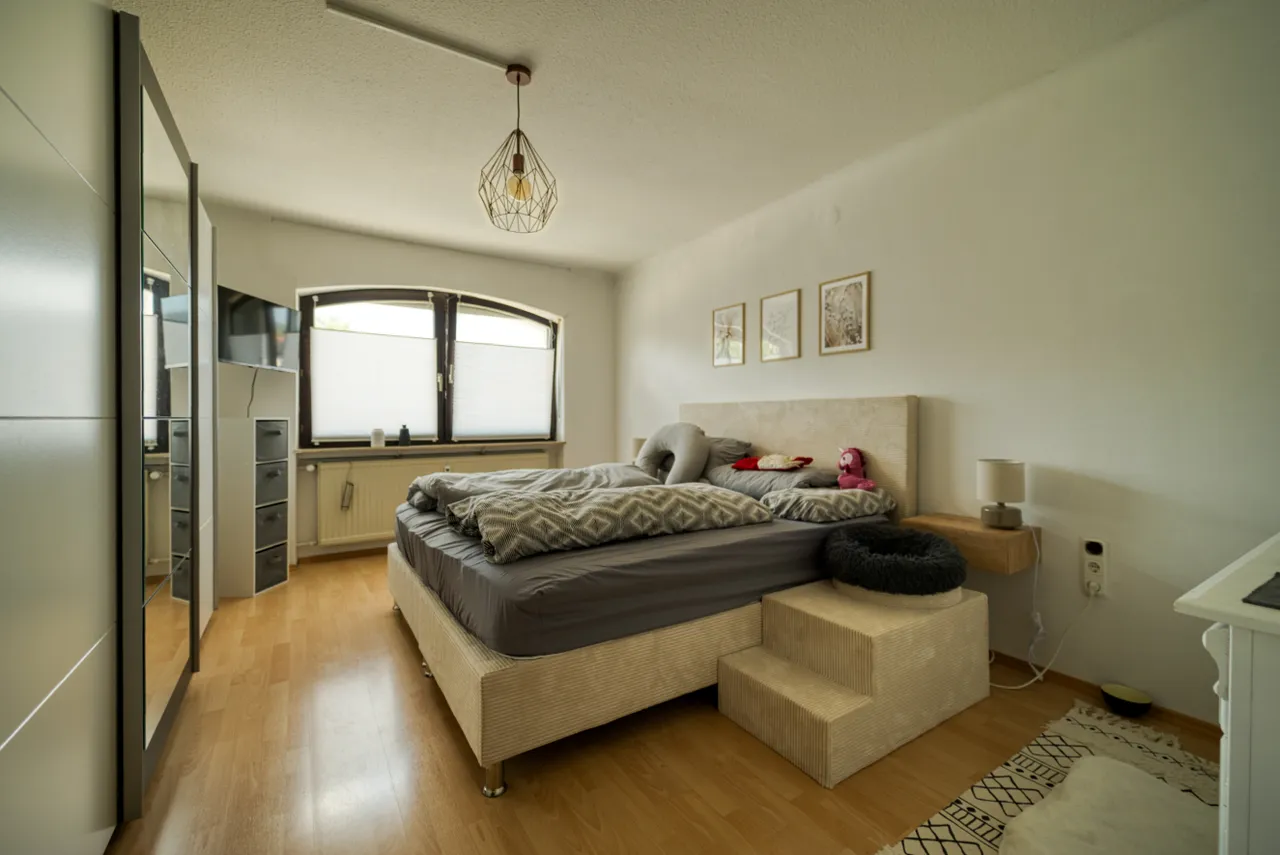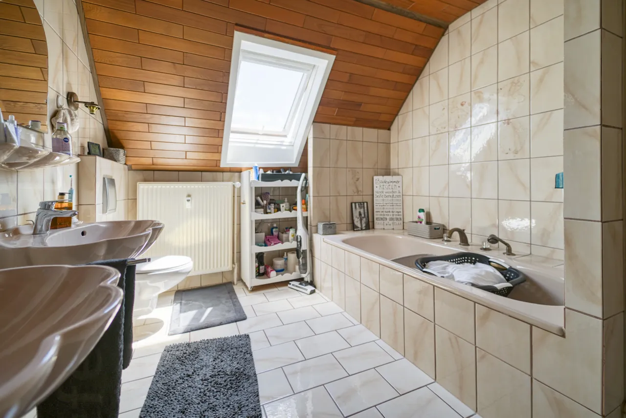 Das Haus selbst ist in einem gepflegten Zustand und bietet zwei abgeschlossene Wohnungen, die beide bereits vermietet sind. Die obere Wohnung bietet nicht nur ausreichend Platz für eine Familie, sondern nutzt auch einen Teil des voll ausgebauten Dachgeschosses mit. Hier kannst du dich nach Lust und Laune entfalten und dein Zuhause ganz nach deinen Wünschen gestalten.