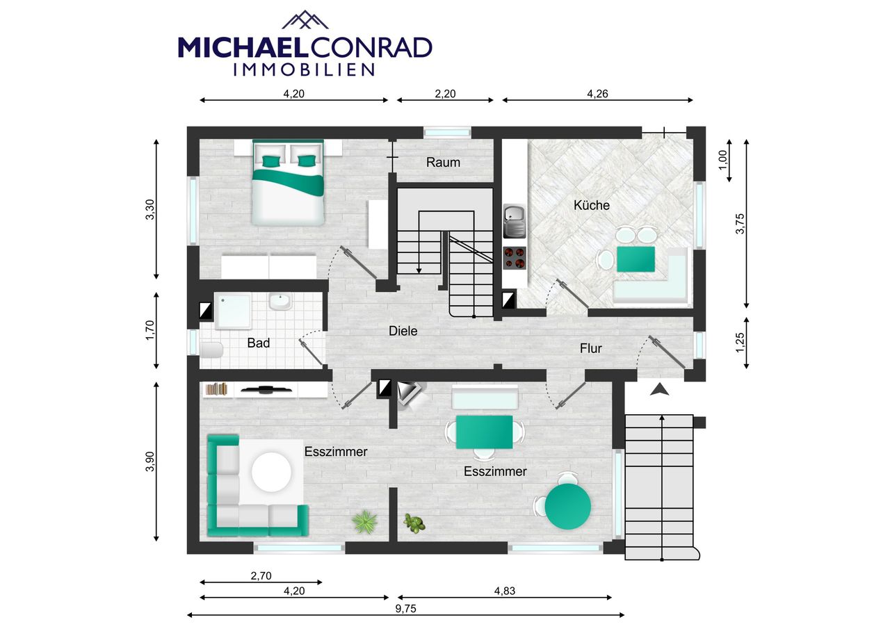 Alle auf die Immobilie bezogene Angaben (sofern nicht anders gekennzeichnet) stammen vom Verkäufer oder dessen Vertreter. Alle Angaben dieses Exposés sind unverbindlich und vom Interessenten vor Kauf eigenverantwortlich zu prüfen. Die Wohnfläche wurde anhand von Grundrissen geschätzt. Eine Überprüfung der Wohnfläche, sowie eine Einsicht in die behördlichen Bauakten hat nicht durch uns stattgefunden. Eine Haftung durch Michael Conrad Immobilien ist ausgeschlossen. Zwischenverkauf und Irrtümer vorbehalten. Eine Überprüfung der vorstehenden Punkte findet nicht durch uns statt. Alle Angaben in diesem Exposé sind unverbindliche Beschreibungen und dienen ausdrücklich nicht als zugesicherte Eigenschaften. Der Verkäufer, die Verkäuferin zahlt an uns Provision in selbiger Höhe.