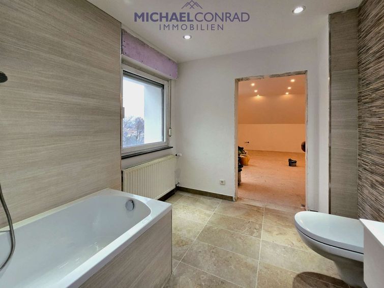 Dachgeschoss: Neues, modernes Bad (2026) mit Wanne.