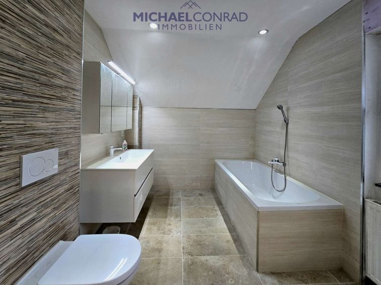 Dachgeschoss: Neues, modernes Bad (2026) mit Wanne.